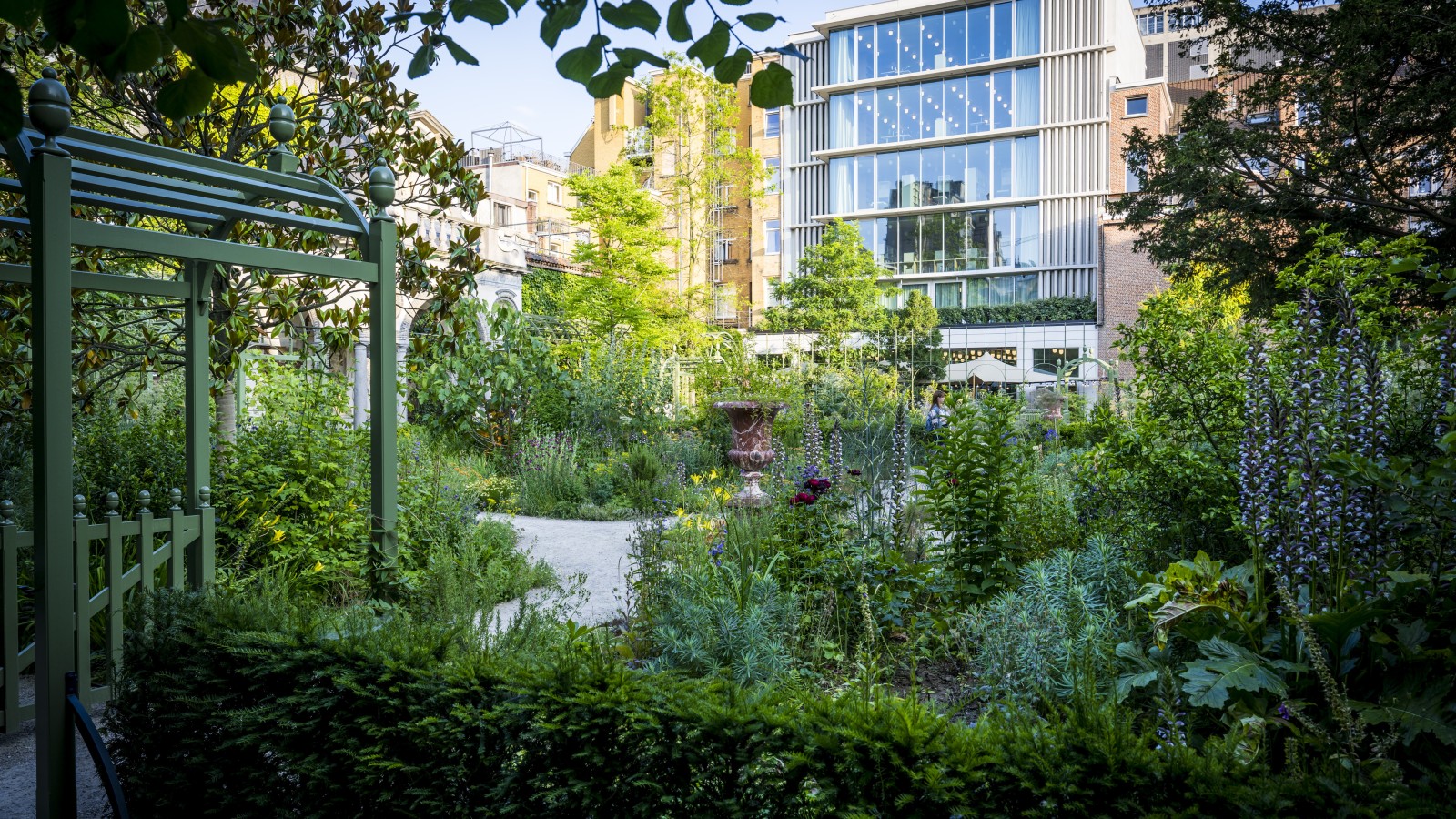 Omdat de schilder al meer dan 400 jaar niet meer kan reageren, kozen de ontwerpers voor een opvallend ingetogen aanpak. ‘Het nieuwe gebouw mag niet concurreren met de lijnen en structuren van de tuin,’ licht Jonas Vanbelle toe, ‘maar moet er zich juist bescheiden in voegen.’