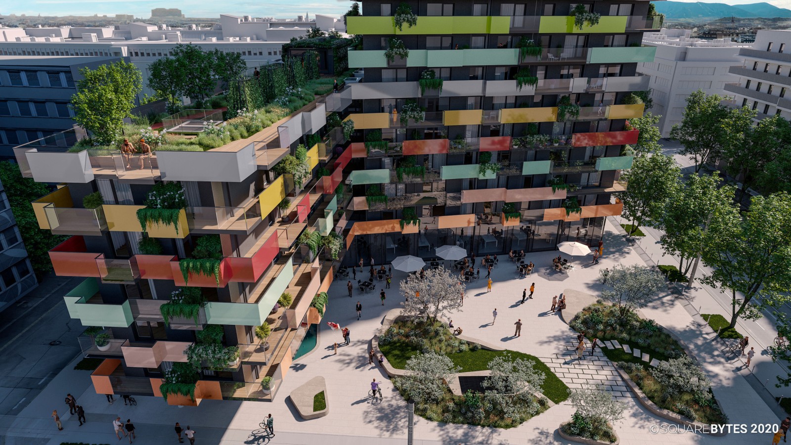 Het kleurrijke gebouw DS 90 in het hart van Wenen telt 382 appartementen.