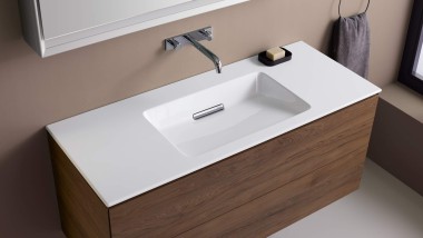 Les meubles en bois créent une atmosphère chaleureuse et accueillante, et sont fabriqués par Geberit en Europe. Les sous-meubles offrent de précieux espaces de rangement, tandis que les astucieux compartiments de tiroir optimisent l’organisation.